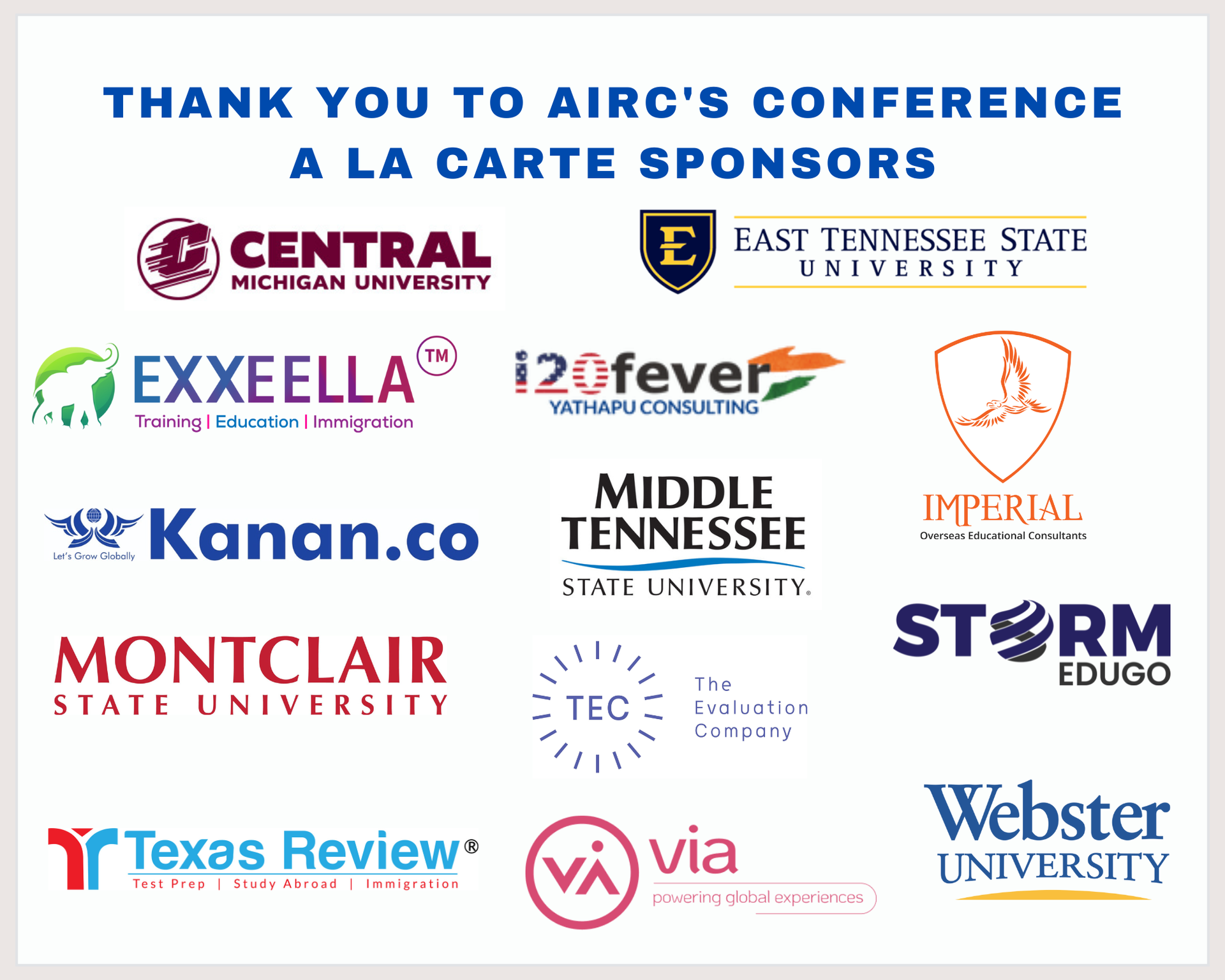 - Representatives from companies and for-profit organizations in a category other than those listed above must become an AIRC 2025 Annual Conference sponsor in order to present at and attend the AIRC Conference.