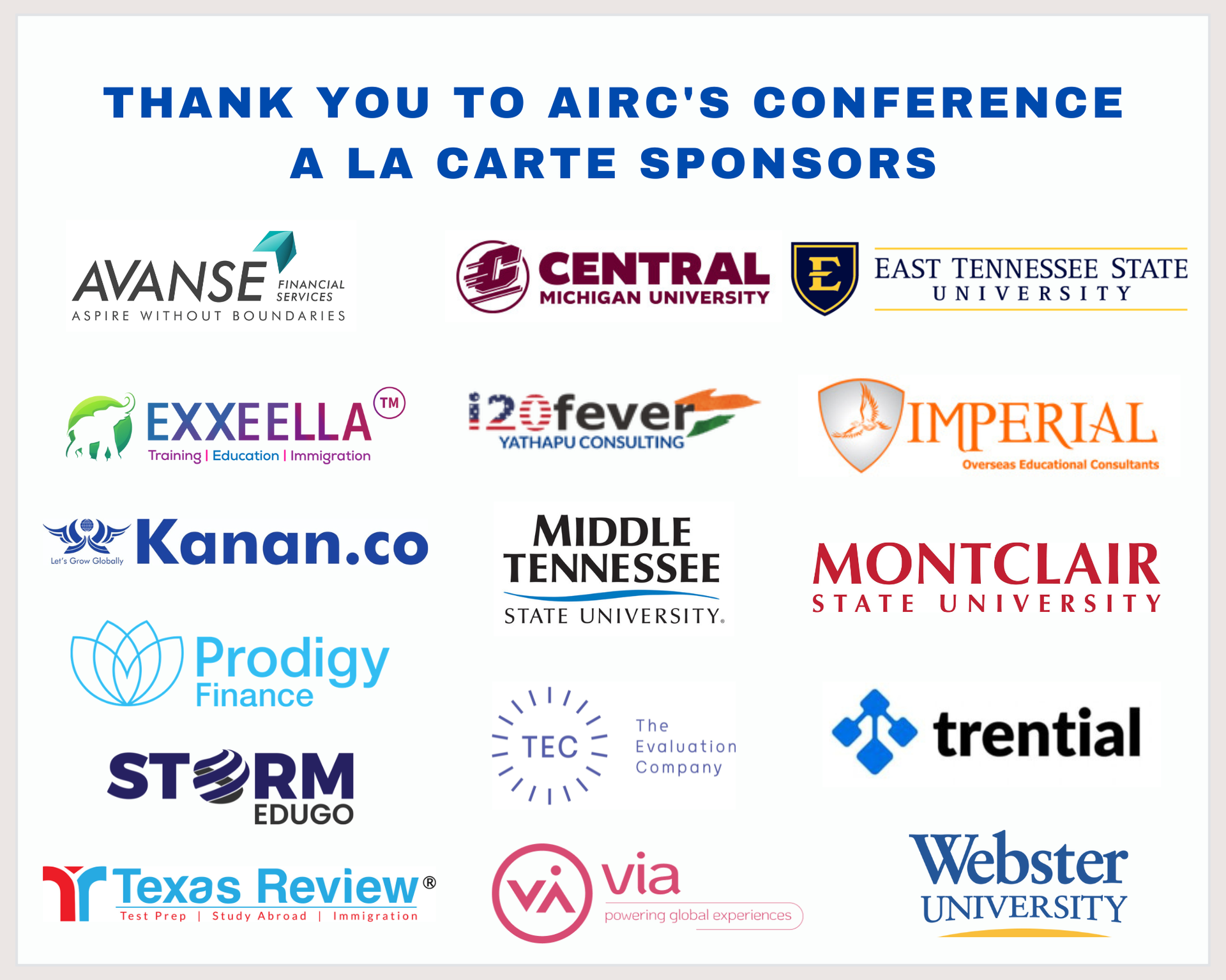 - Representatives from companies and for-profit organizations in a category other than those listed above must become an AIRC 2025 Annual Conference sponsor in order to present at and attend the AIRC Conference.